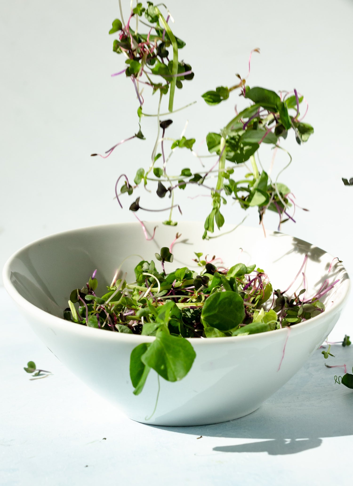Microgreens sind die zarten, jungen Pflänzchen von Gemüse- und Kräuterarten. Sie werden nach ca. 7-20 Tagen geerntet, wenn sie gerade einmal ihre Keimblätter entwickelt haben.